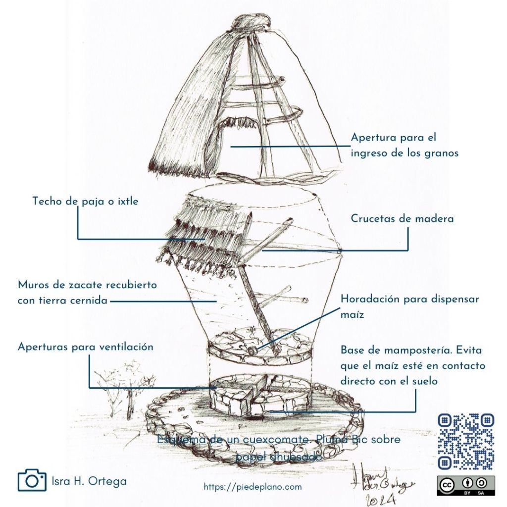Silo, troje o granero. Recipiente grande de origen prehispánico para almacenar semillas, principalmente maíz. La estructura es de forma troncocónica para evitar el ingreso de roedores. Es elaborada con troncos de madera forrados con varas de zacate y tierra desplantada sobre una base circular de piedra, a veces de río (piedra bola) o de tamaño similar. La cubierta es de paja o ixtle.