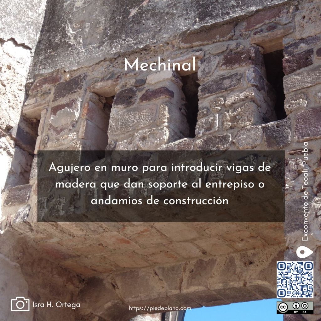 Agujero en muro para introducir vigas de madera que dan soporte al entrepiso o andamios de construcción. En la construcción de edificios antiguos fue una solución para la edificación de inmuebles de dos o más niveles. En la actualidad todavía se utilizan los mechinales, aunque muchas veces es para empotrar vigas de madera meramente ornamentales.