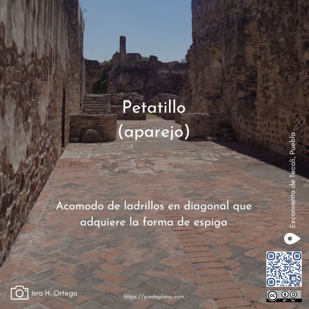 En la construcción, «petatillo» es un tipo de aparejo en la que las piezas de mampostería, comúnmente ladrillos de barro rojo recocido se acomodan en diagonal perpendicular entre cada una de las piezas adquiriendo la forma de espiga.