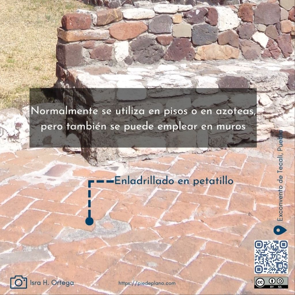 El enladrillado en petatillo es muy utilizado en las azoteas para que en conjunto con el relleno se pueda dar las pendientes para el desalojo de aguas pluviales.