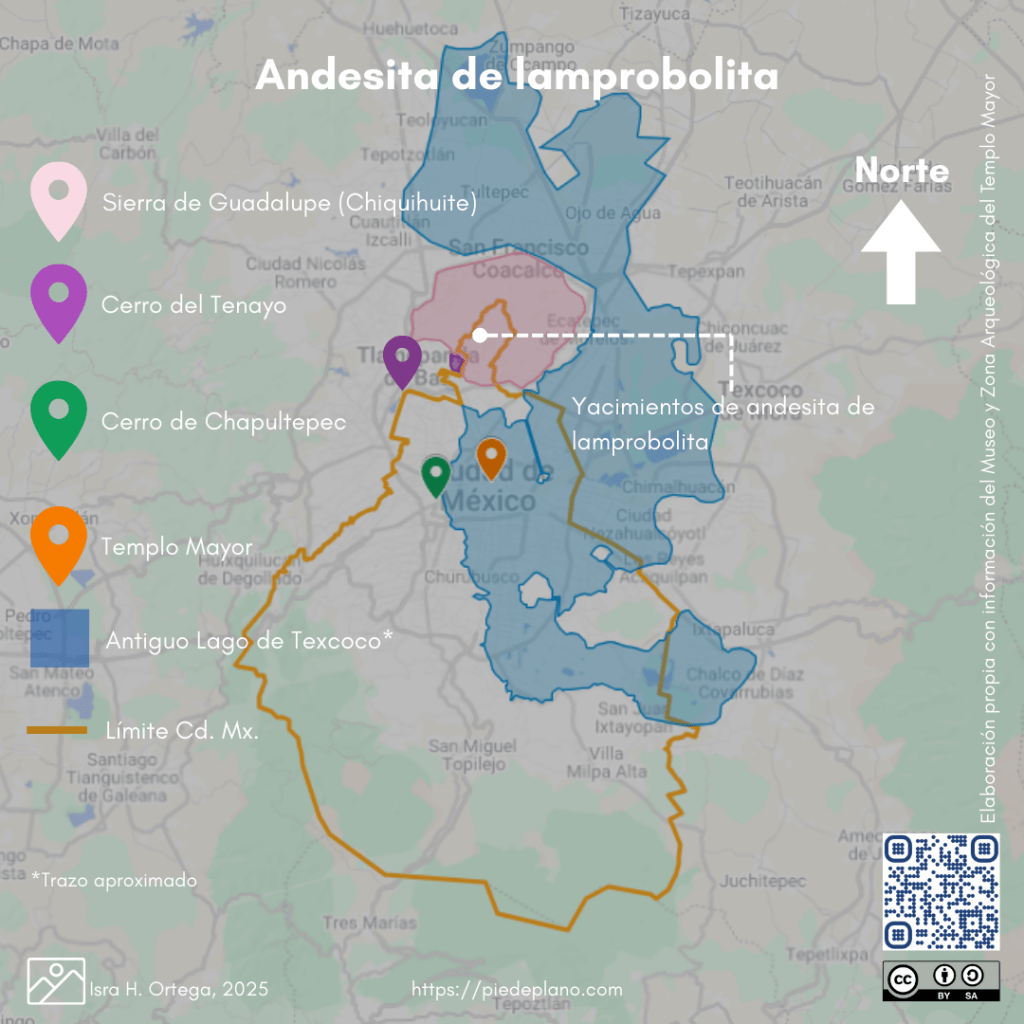 En la Cuenca de México, los mayores yacimientos de andesita de lamprobolita se encuentran todavía en la Sierra Guadalupe, específicamente en las inmediaciones del Cerro del Chiquihuite, en los límites de la Ciudad y Estado de México, al norte de la capital.