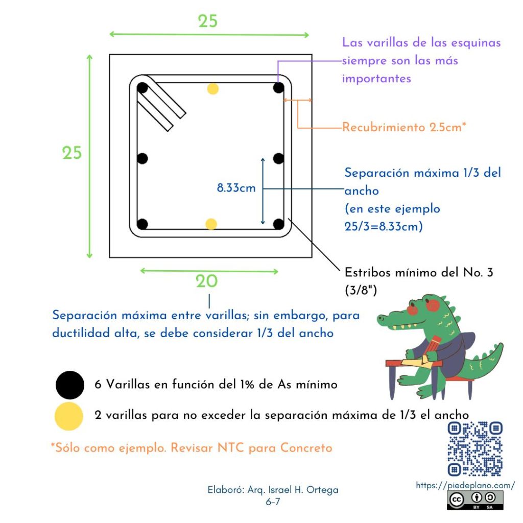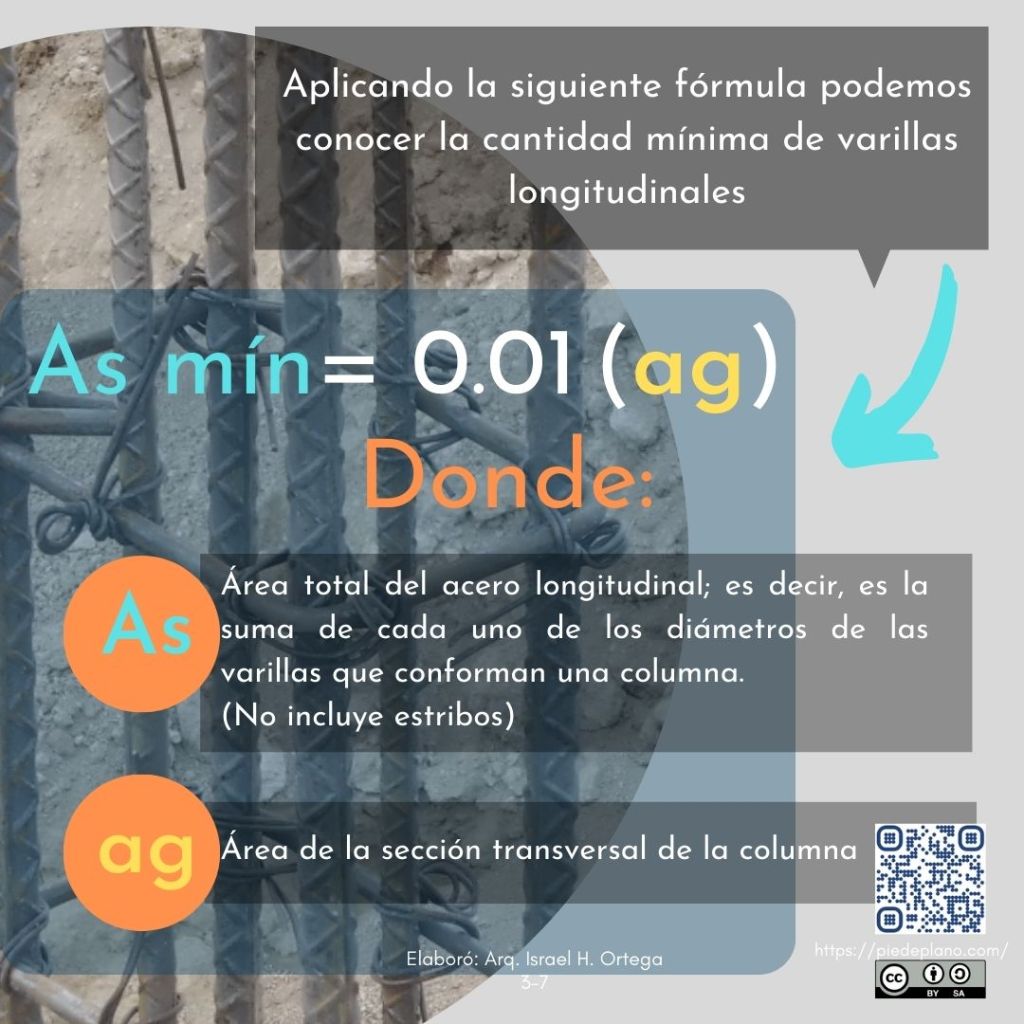 Existen dos criterios imprescindibles que permiten conocer el mínimo de varillas: mínimo 4 varillas (una en cada esquina) y en función de sus medidas de acuerdo con su ductilidad.