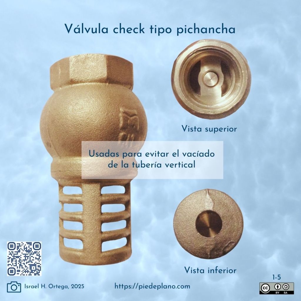 Las válvulas pichancha, también conocidas como válvulas de pie, son un tipo de válvulas check o antirretorno, pues la circulación de los líquidos en su interior es en un sólo sentido. Por ello, se utilizan en aquellos lugares donde se quiera evitar que el agua se regrese.